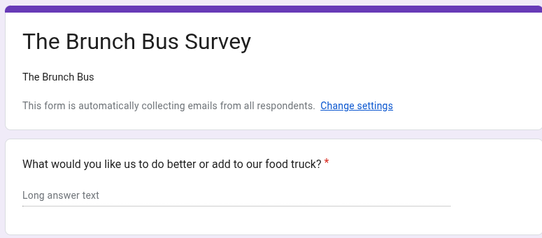 This picture brings you to the google forms survey for the brunch bus. This will help us see were we need to improve.